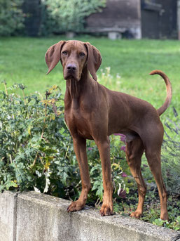 Das ist Piggeldy – auch liebevoll „Vollgas-Toni“ genannt – ein typischer Magyar Vizsla, geboren am 01.09.2023.